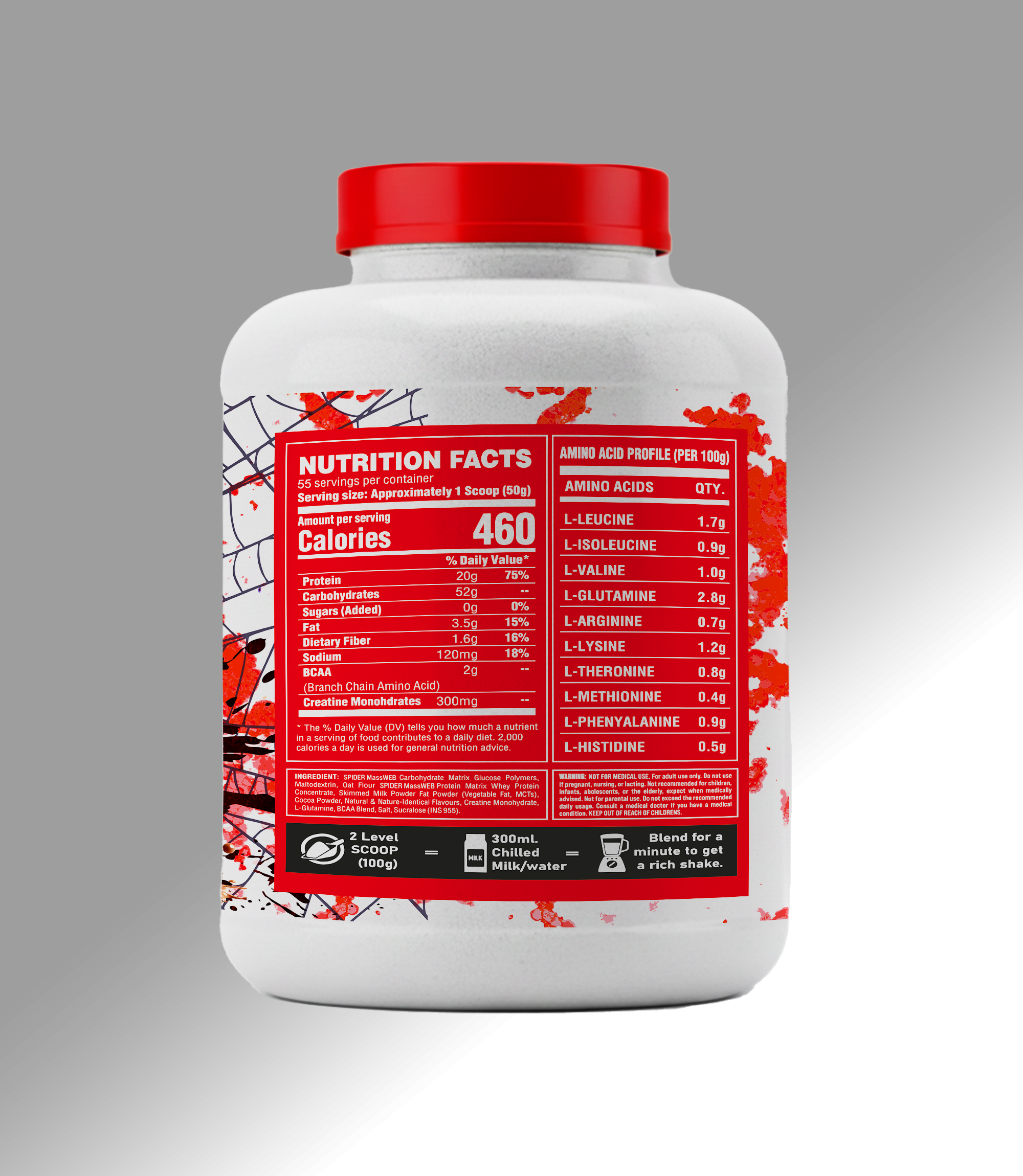 Spider MassWeb™ Mass Gainer is a high-calorie, high-performance formula designed for hard gainers, athletes, and anyone looking to pack on lean mass without compromise. Engineered with a precise blend of fast and slow-digesting carbohydrates, premium proteins, and essential nutrients, MassWeb™ fuels intense training and supports rapid muscle growth and recovery.